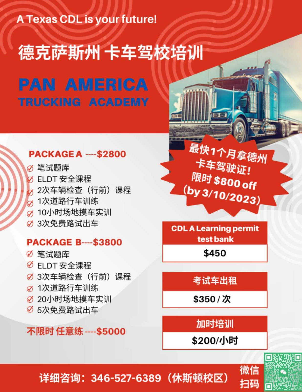 【泛美华人卡车驾校休斯顿校区】招生